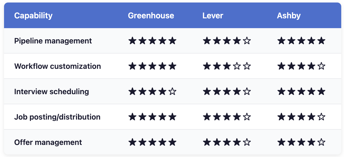 Verdict: Greenhouse offers the deepest customization. Ashby wins on scheduling automation. Lever provides the smoothest basic workflows.